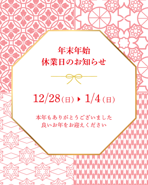 さて、誠に勝手ながら、弊社では下記の期間を年末年始休業とさせていただきます。期間中はご不便をおかけいたしますが、何卒ご了承くださいますようお願い申し上げます。
