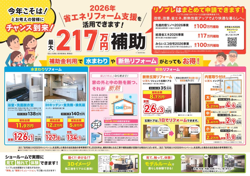 また、2026年も引き続き国の補助金【みらいエコ住宅2026事業】があります!!